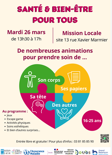 La Mission Locale du bassin d’emploi de Besançon organise un évènement « Santé & Bien-être » en présence de nombreux partenaires.