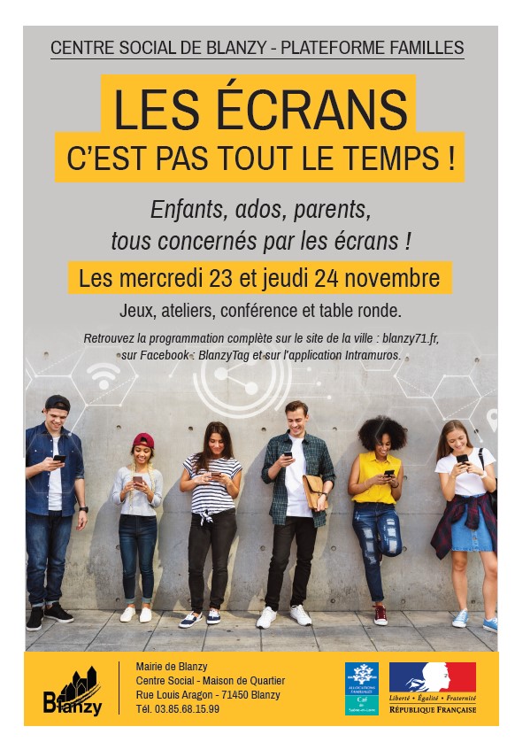 Enfants, ados, parents, tous concernés par les écrans ! La Plateforme Famille du Centre social de Blanzy organise deux journées de prévention autour des écrans
